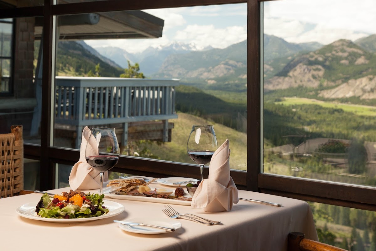 From the moment you step into The Dining Room, you’re greeted by a warm, welcoming atmosphere that combines rustic elegance with a modern flair. The expansive windows overlook breathtaking mountain vistas, creating the perfect backdrop for a relaxed yet refined meal. The wood-paneling and large stone fireplace enhance the cozy, inviting feel of the space, making it ideal for both intimate dinners and larger gatherings.